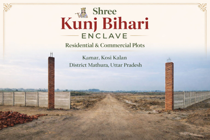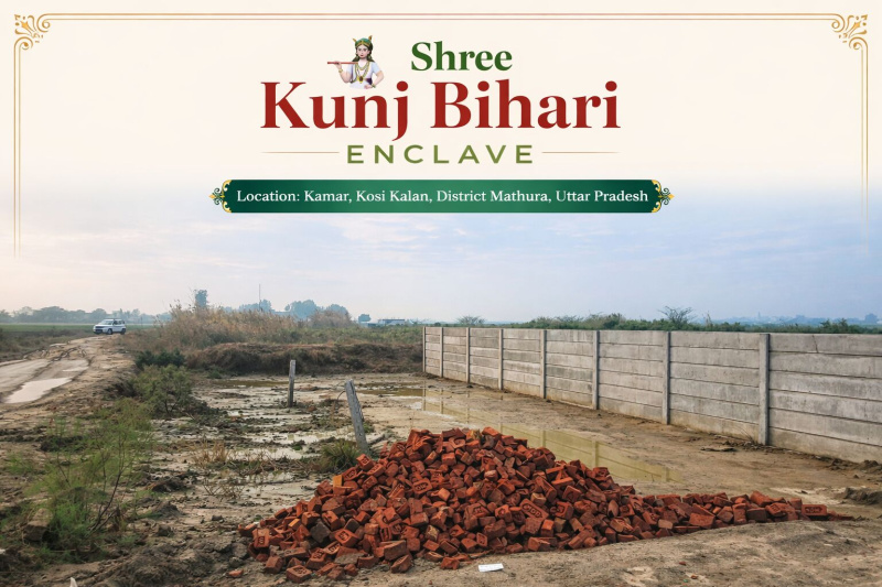 Experience premium living at Shree Kunj Bihari Enclave in Kamar, Kosi Kalan, strategically located on NH2 near Mathura. This gated colony offers pollution-free environment, modern infrastructure, and flexible payment plans with 0% interest EMI. Perfect for residential plots and investment opportunities. EMI Starting from 5000/- only. Near Famous Holy Places. Nearby Religious Temples: Shani Dham, Vrindavan and Mathura. Plots and Farm houses in Mathura, Vrindavan and Kosi Kalan. Immediate possession. Price hike very soon. Very Limited Plots. Assured returns of 1 percent monthly for 36 months. Buy Back option available with registered agreement. Do not miss the right opportunity or be too late. Registry with complete legal documentation. Gated Community, 24/7 Security, Water Supply, Green Spaces, Wide Roads. National Highway (NH2) 5 Minutes, Kosi Railway Station 5 Minutes, Shani Dev Mandir 5 Minutes, Nand Baba Mandir; Nearby, Industrial Area; Close Proximity, Jagannath Dham; Nearby Hub. Gated society having full services with all amenities:: Grand Entrance Gate with Guard Room, Wide Damar (Blacktop) Roads inside colony, Pollution-Free Green Environment, Electricity & Water Supply Available, Gated Colony with Closed Boundary, 100% Clear Title & Immediate Mutation, Immediate Registry with 35% Payment, 0% Interest free EMIs for 60 Months