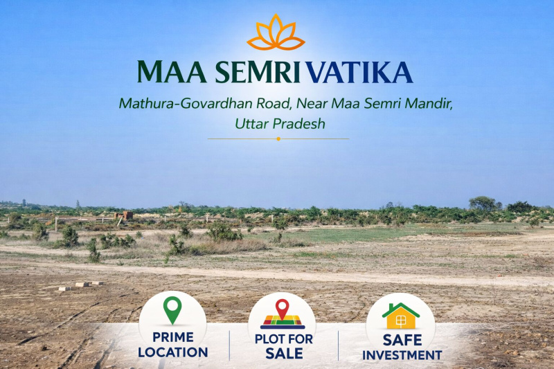 Maa Semri Vatika A World-Class Premium Elite Township for Your Family - Elite Living in Holy Braj Experience world-class township living at Maa Simri Vatika - the premium gated colony that redefines luxury in the holy land of Braj. Perfectly positioned at the center of Vrindavan, Mathura City, and Govardhan, this elite community offers grand entrance gates, lush green parks, and wide blacktop roads. With 24-month easy EMI and proximity to the sacred Maa Semri Mandir, this is where modern luxury meets spiritual peace. Premium Amenities: Premium- Grand Entrance Gate: Architecturally designed entrance with security cabin and decorative lighting Lifestyle- Lush Green Parks: Professionally landscaped gardens with walking tracks and seating areas Infrastructure- Wide Blacktop Roads: 40ft main roads and 30ft internal roads - wider than city standards Social- Community Club: Modern clubhouse with indoor games and event space Spiritual- Temple Complex: Beautiful temple inside society for daily prayers Family- Kids Playground: Safe play area with modern equipment for children Premium features & benefits: World-Class Premium Township in Holy Braj Strategic Center Point: Vrindavan-Mathura-Govardhan Grand Entrance Gate with Architectural Excellence Lush Green Parks with Landscaped Gardens Wide Blacktop Roads (40ft Main, 30ft Internal) Premium Amenities - Club, Temple, Playground Elite Community Living - Best Families 24-Month Easy EMI - Most Flexible Payment 1 Minute distance from Maa Simri Mandir, Sacred temple with divine history 12 Minutes from Vrindavan Temples, all major Krishna temples 10 Minutes from Mathura City Center, Shopping, hospitals, schools 15 Minutes from Govardhan Parikrama, Holy pilgrimage circuit 400 meters from NH2 & Expressway, Superior connectivity