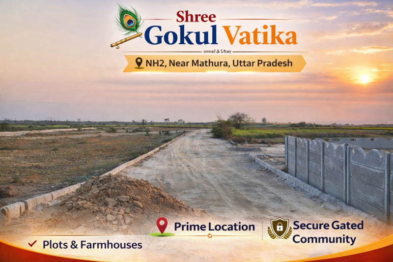 Experience the difference of professional township planning at Shree Gokul Vatika. Unlike ordinary colonies with narrow roads and no security, we offer 30ft wide blacktop roads, 24/7 CCTV surveillance, and complete infrastructure. Located strategically on NH2 near Mathura, this investment-grade gated community sets new standards for quality living. Every detail is professionally planned for your family's comfort and safety. 30 feet Wide Roads, 24/7 CCTV Monitored, Approved Planned Layout
