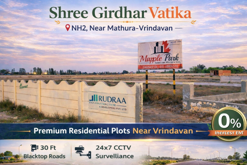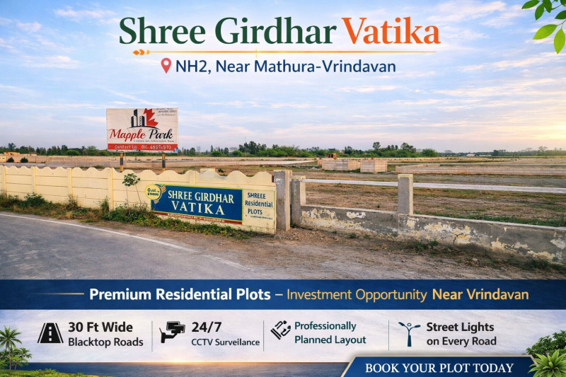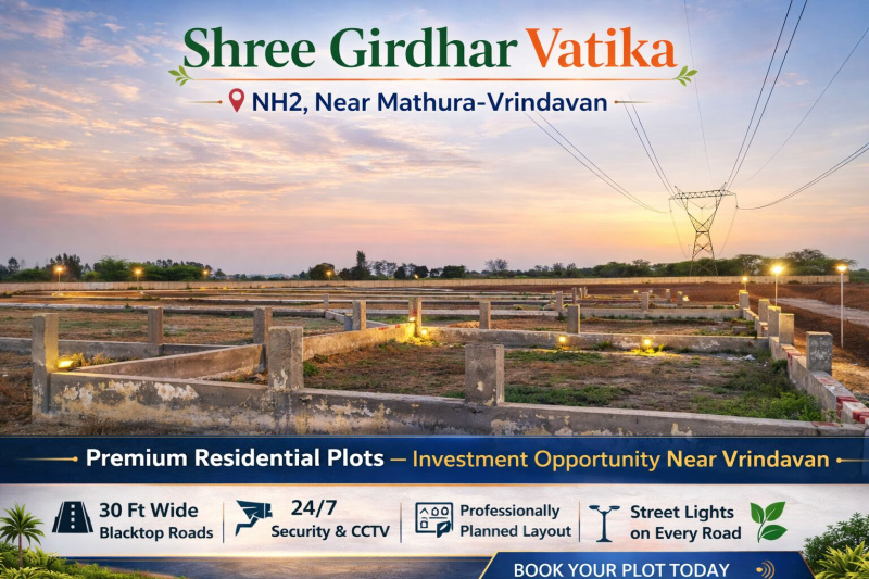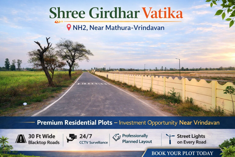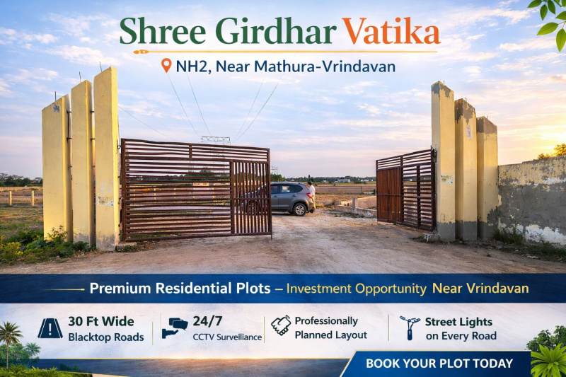 Experience the difference of professional township planning at Shree Gokul Vatika. Unlike ordinary colonies with narrow roads and no security, we offer 30ft wide blacktop roads, 24/7 CCTV surveillance, and complete infrastructure. Located strategically on NH2 near Mathura, this investment-grade gated community sets new standards for quality living. Every detail is professionally planned for your family's comfort and safety. 30 feet Wide Roads, 24/7 CCTV Monitored, Approved Planned Layout